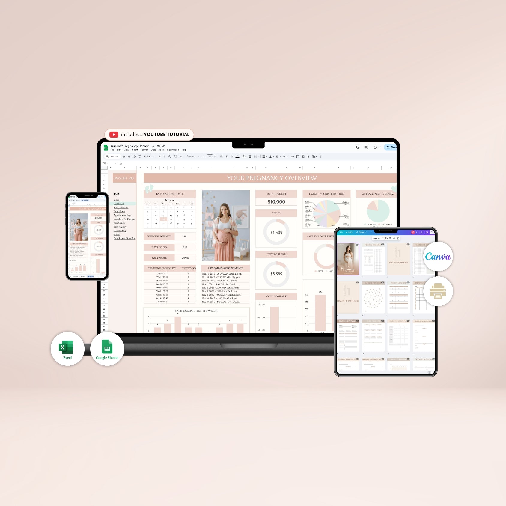 The Aureline Pregnancy Planner keeps everything together — from appointments and budgets to baby names and hospital prep — so you can feel calm, organized, and ready for every stage ahead.